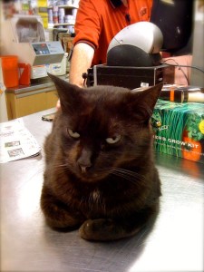 It’s not Thanksgiving yet, but I went ahead and took advantage of the lovely weather and hung Christmas decorations outside. When I figured out that two of my pre-lit wreaths from last year were burned out, I headed to the hardware store down the street. (Somehow I just couldn’t bring myself to test two wreaths-worth of little lights.) I’m so glad I did because I got to see Jughead, the store’s resident mascot and mouser. He hangs out at the paint counter and is the most laid back cat ever. Then again, he doesn’t have much to stress about; he is spoiled rotten. Cozy bed, lots of food, freedom to roam around the store and all of the chin/ear scratches he wants. He’s got it all.