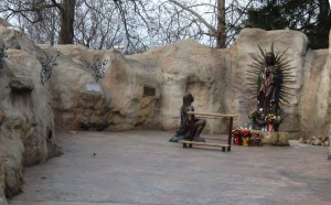 Tanner had his last match at oh-gawd-o’clock this morning, so we headed back to Belleville bright and early. Not ready to make small talk with tennis parents, I picked up some caffeine and headed back over to the Shrine of Our Lady of the Snows. There were so many things that were begging for a closer look during last night’s tour, I had to go back when there was more light. The nativity looks so different during the day. No less beautiful, just different.