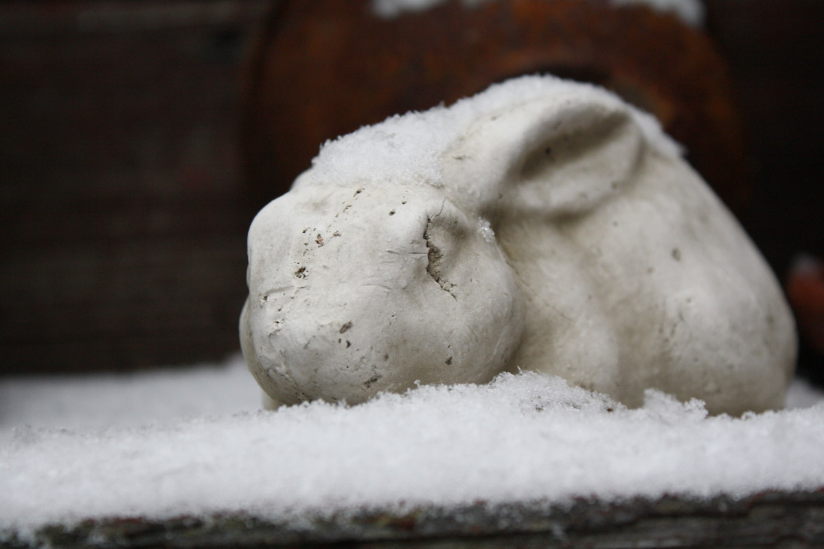 I hunkered down under the covers last night, fully expecting to wake up to a winter wonderland. Bright and early this morning, I got up, ran to the window, parted the curtains and…we got squat. You can’t even call this a legitimate dusting. I’ve seen photos and read reports from friends in other parts of the country (or even Missouri!) that they are building snowmen, making snow angels and missing school. I really want to build a snowman this year. 😦