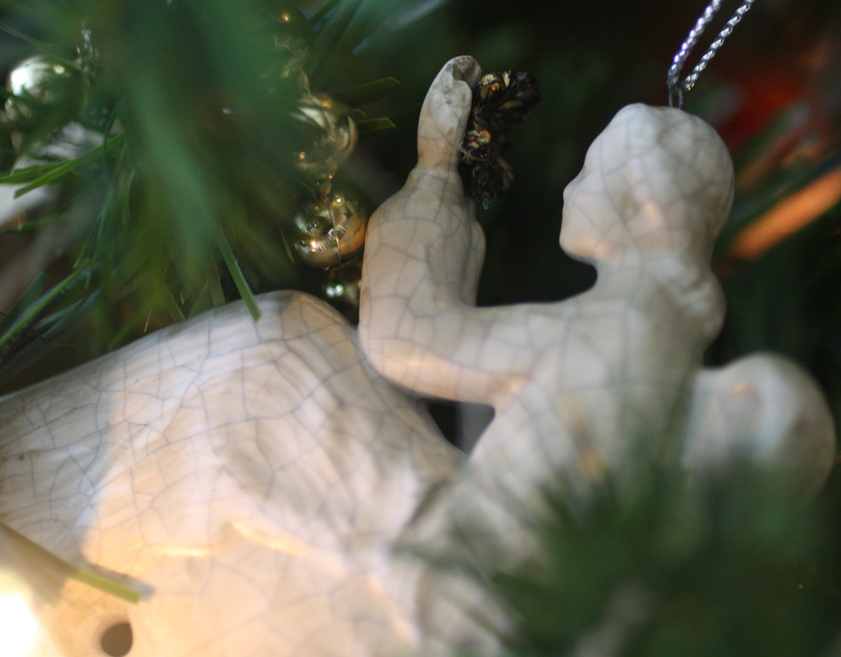 Hard to believe that Christmas is already gone and we’re knocking on the door of a new decade. Christmas was spent with family and a good time was had by all. The boys have more clothes, iTunes money and seasons of That 70s Show than they know what to do with. But more than anything, they had fun. And so did I. We seldom get to spend that much time with my family. And as usual, my folks’ tree didn’t disappoint. Every year we all say that another ornament could not fit on that little tree and yet every year there’s always something new. It’s a wonderland in and of itself. (The little angel was my kindergarten craft project made with wooden ice cream spoons.)