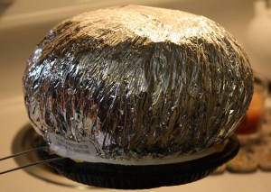 This was the view out the patio door during lunch on a school’s-cancelled and I’m-working-from-home snow day. And for something different, I popped up some Jiffy Pop for the kids. Is it just me, or does the finished product remind you of a rather unfortunate news story? I know that Jiffy Pop came first, so I don’t hold it against the product — but it sort of creeped me out.
