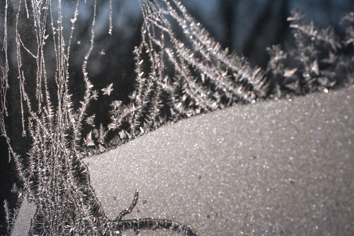 Just a tiny bit of frost created the coolest patterns on a window this morning. (So glad that I was indoors!)
