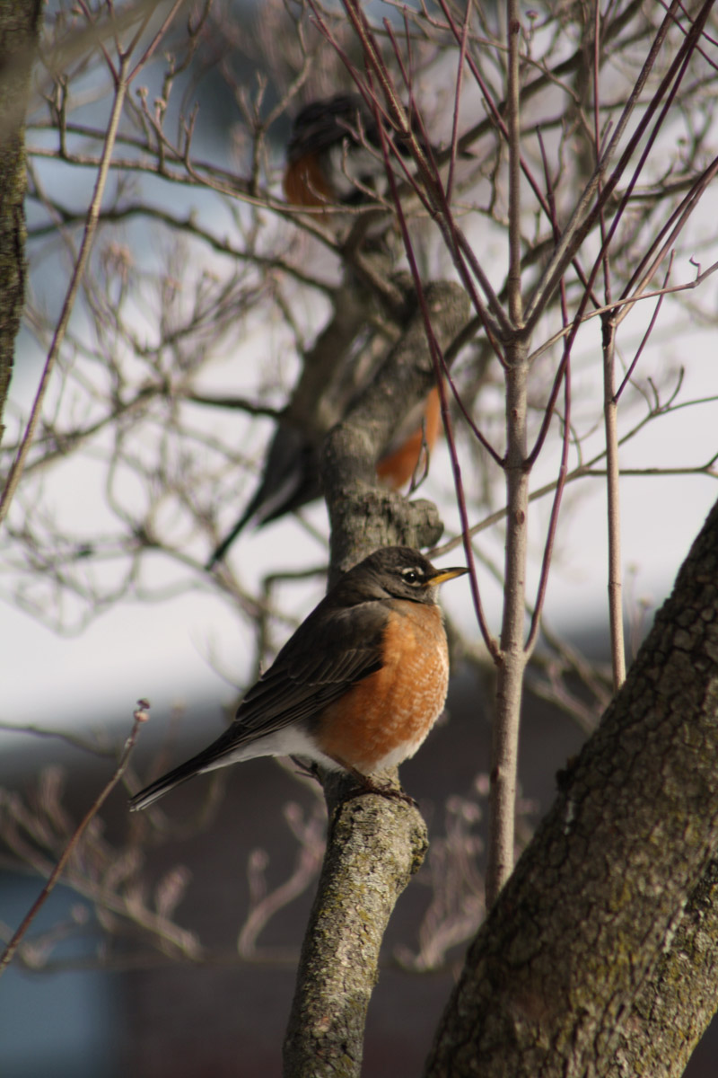 The story out front is a gaggle of robins. They are everywhere. At one point, we had more than a dozen congregated in our little dogwood.