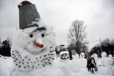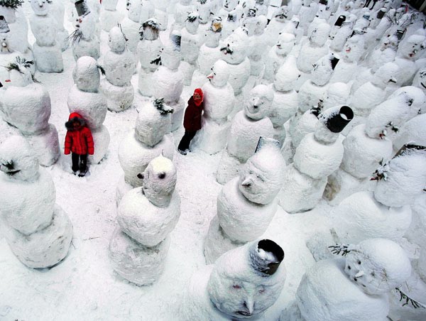 More than 100 snowmen from Slava Polunin’s Snow Show. Evidently they do this every year in a different part of Moscow (after a heavy snowfall) to promote the performances of some famous Russian clowns. I don’t care for clowns, but these snowmen are so much fun.