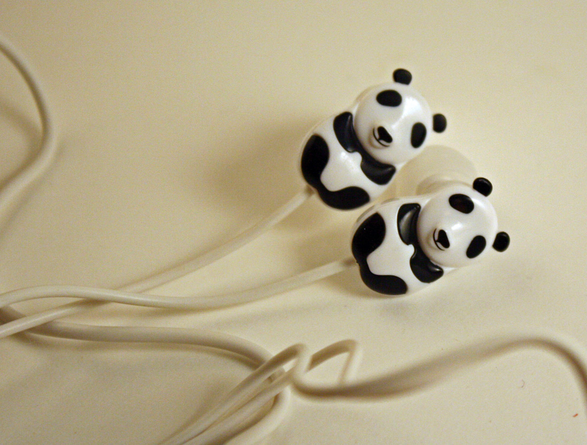 You just gotta know where to shop. Or have friends who tell you where to shop. Happiness arrived on my doorstep in the form of a tiny cardboard box today. Actually, happiness took the form of panda bear ear buds that my friend Amy found online and told me about. Thank you, Amy! I am now the proud owner of the coolest ear buds on the planet.