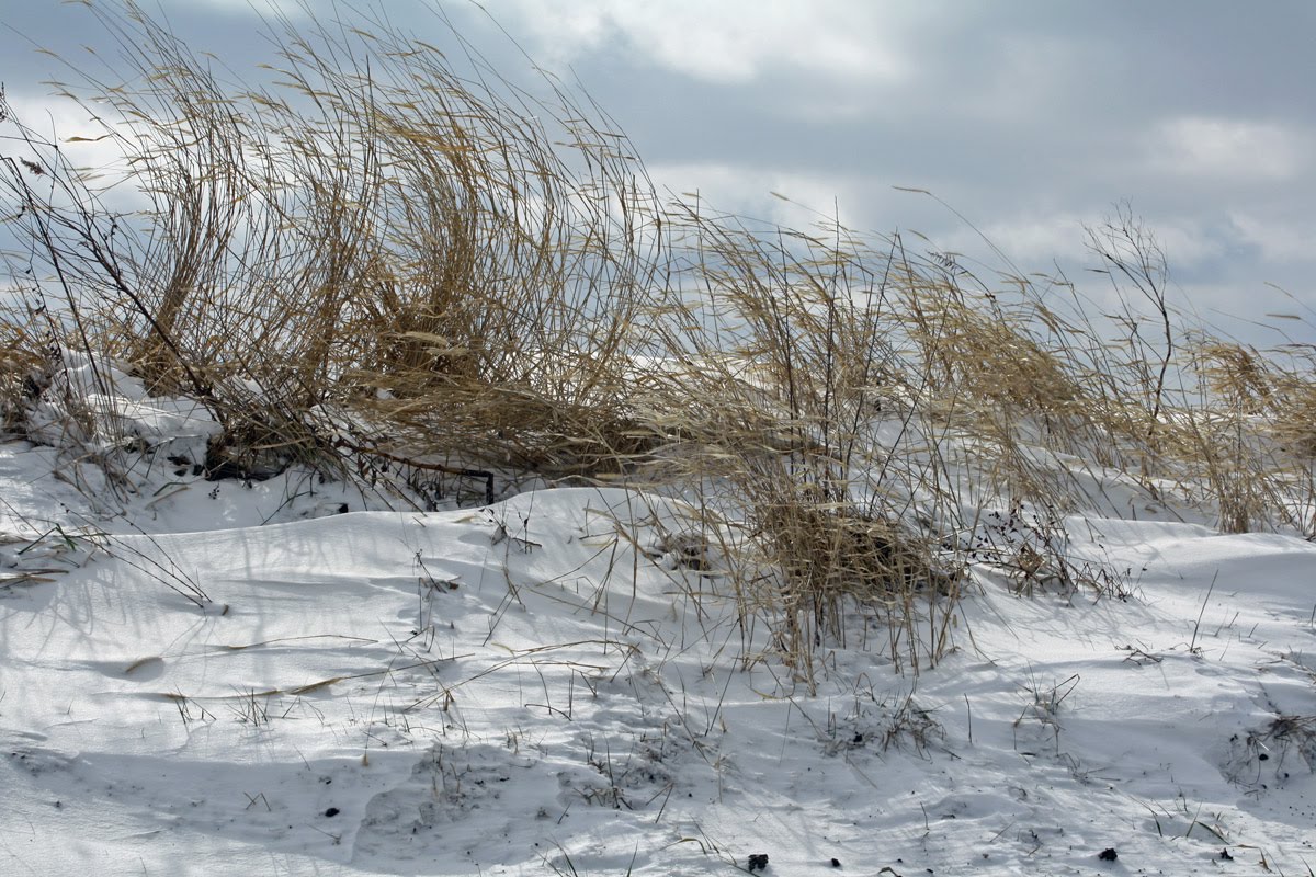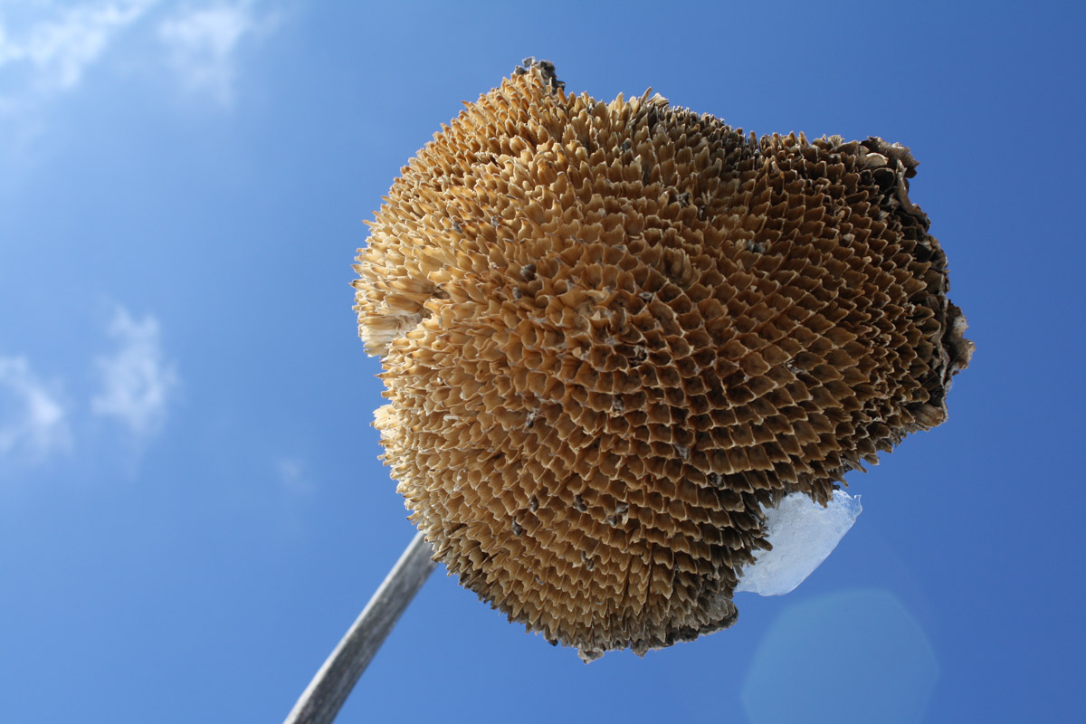 This large lake is surrounded by picnic tables and benches. It’s really lovely. We’ll have to go back this summer. But I also want to go back this summer to see the area’s sunflowers in bloom. Today I saw an entire field of these bowed, snow-covered flower heads.