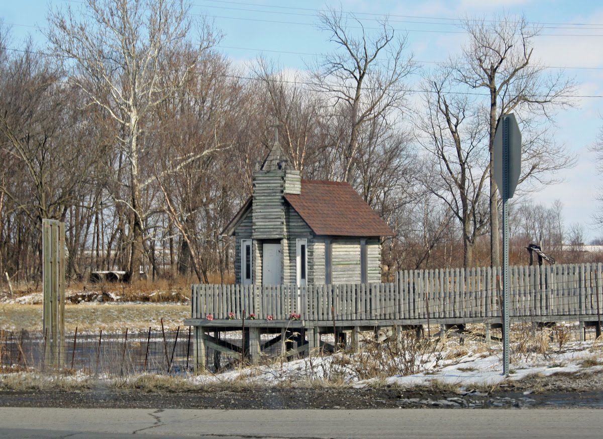 As I headed back to the interstate, I saw this strange little building next to a convenience store. At first I thought it was an outhouse, but there’s a little cross on the top. Ya got me…I have no idea.