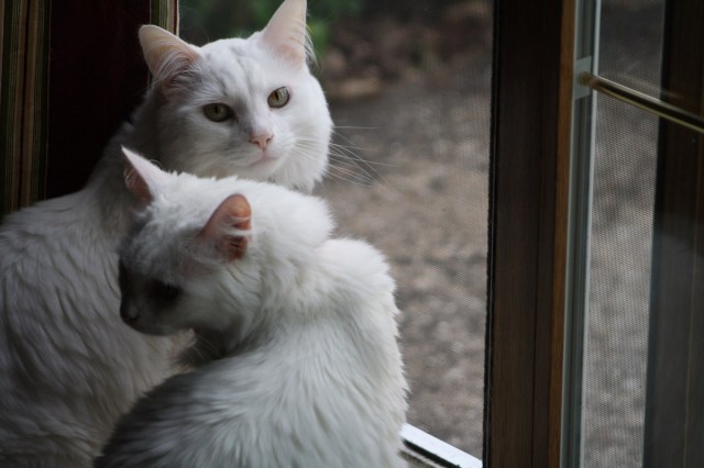 Doors and windows open, scents of spring drifting through the screen…both kitties were digging it.