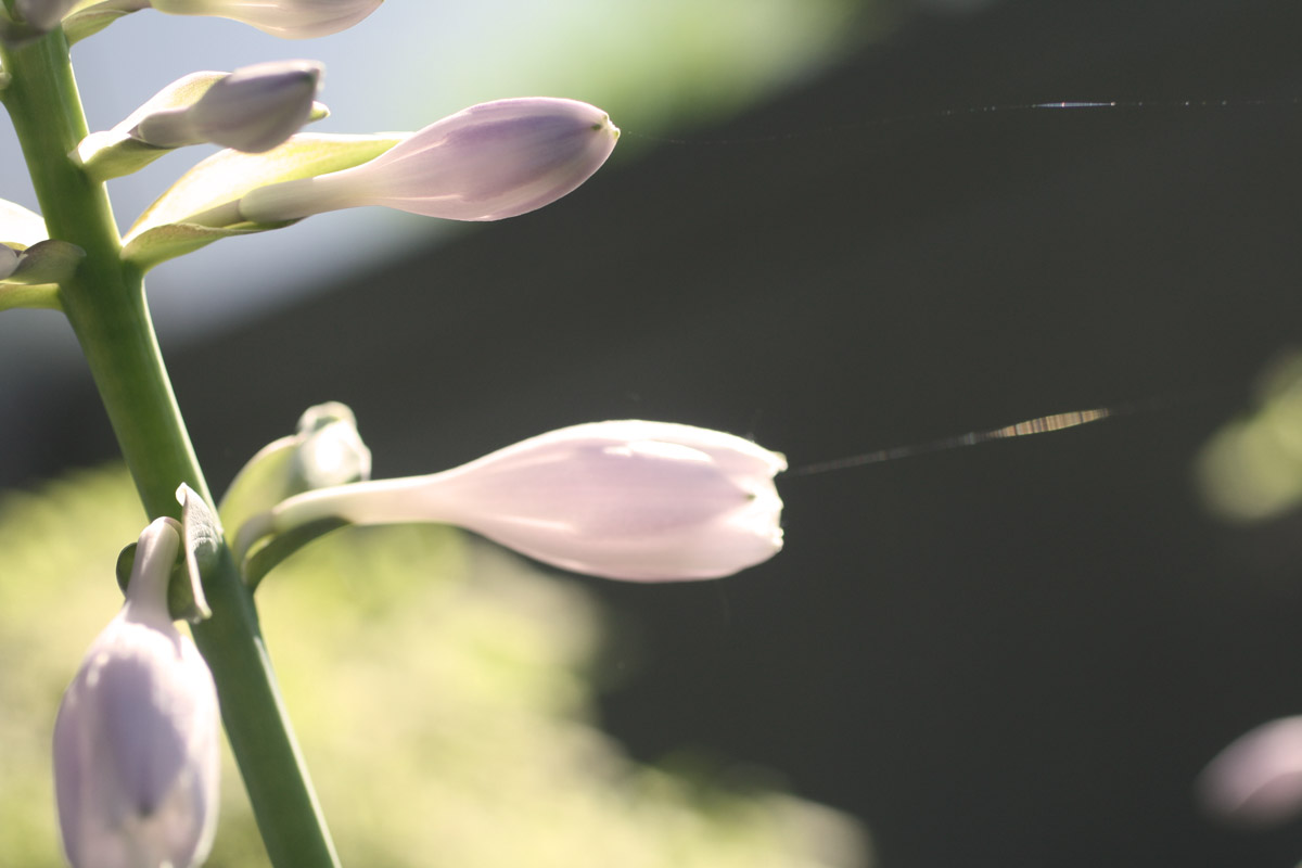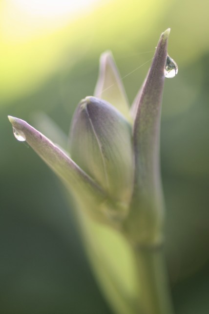 Went to work super early this morning. As I waited for the parking garage gate to lift, I was taken with the way the sun played off of the dew and random web strings on the hostas in the landscaping. It seems impolite to ignore nature when it extends little gifts of beauty. So I parked the car and came back outside.