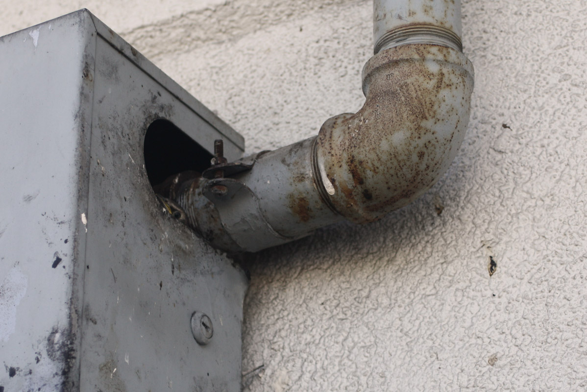 It was an entirely different kind of light by the time I got out of the office this afternoon. Bright and hot. But nature had one more photo op for me. This was taken right next to the first window of the McDonald’s drive thru. If you look really close, you can see a baby bird checking me out where the pipe meets the opening. His mom had just left and I happened to have my camera on the front seat. When I paid for my food, I said to the cashier, “Did you know that you have a bird nest in that thing?!” Unimpressed, he replied, “Yeah. And I have to listen to them all day long.” Alrighty then. I still thought it was funny.