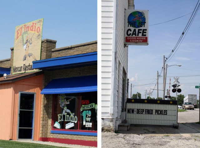 To get to the conservation area, you have to take the highway through an odd little town. I stopped counting how many times the local businesses prompted a “Seriously??” from me. There was the AoK BBQ, some Moose Family lodge thing, the single most politically incorrect eating establishment I have ever seen (below left) and a place whose latest menu addition made my arteries flinch a bit (below right). In spite of its seeming indifference to cholesterol and lack of ethnic sensitivity, it was a cute little town. Free concerts on the courthouse lawn on Fridays! Bring your own lawn chairs!