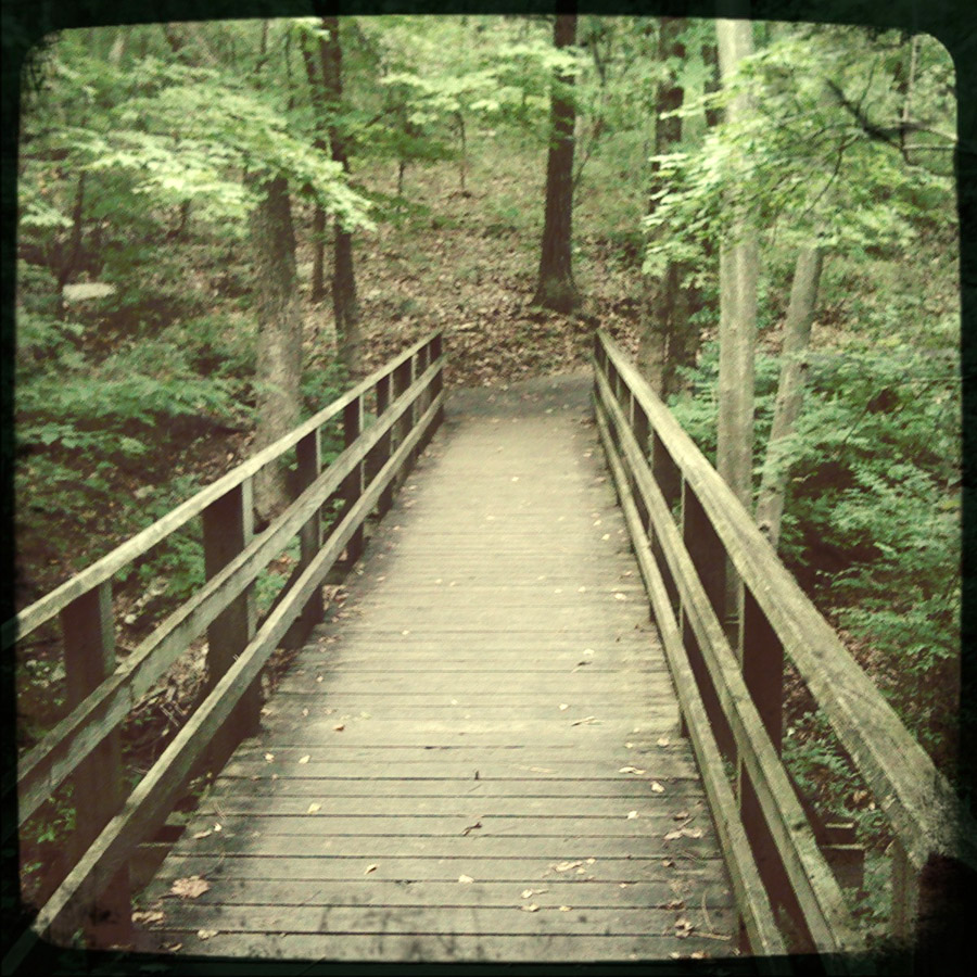 Well, I learned a couple of things this evening. For starters, I learned what Powder Valley looks like through the lens of an iPhone app. And it’s really cool. But you know what else I learned? I learned that fall is coming and the sun is going down earlier. Much earlier. Though it might seem like I could be easily distracted when I wander around the woods, I am usually very careful and mindful of my surroundings. But tonight, I was so enamored with this new perspective of this wonderful place that I didn’t pay attention to anything else. All of the sudden, when I was about three-fourths of a mile into the woods, I stopped and looked around. It dawned on me that I hadn’t seen another walker for quite some time. My phone was giving me a low battery warning and I realized that it was getting dark. Daylight was dimming fast and the canopy of the trees overhead was expediting the process. And oh crap, the gate closes at 8:00. How am I going to haul three-quarters of a mile before the sun goes down AND the gate closes…in flip flops? And if it gets dark before I get out of these woods, how am I going to call anyone – my phone is almost dead. Lemme tell ya, I hauled my rear out of there so fast that I made it to the car with about ten minutes to spare. I’ll admit that this was one of the few times that I’ve felt real fear while being by myself in the woods. And I didn’t like it one bit. Now I’m home and happy to see the photos. But next time, I’m keeping to the short path.