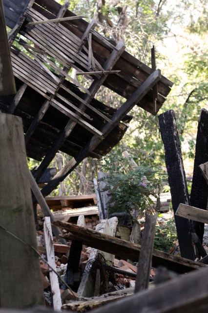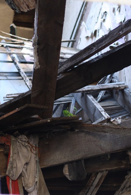 Can you see the little plant growing in the boards? This is at least the second floor of the building. And check out the butterfly bush growing in the middle of the rubble.
