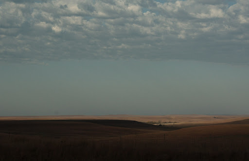 Once I got my heart beating and I was able to breathe again, we hit the road. The lingering sunrise was amazing and cast a lovely glow across the stark Kansas landscape.