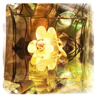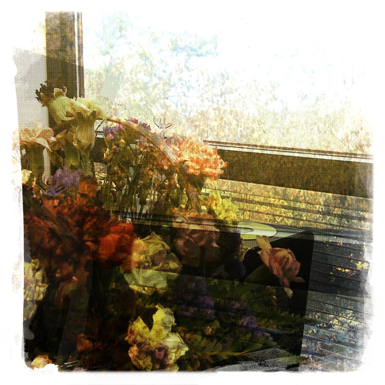 The first photo? My perfume and basket of toiletries — mousse, deodorant, that sort of thing. The second photo? A candle, velcro curlers, diet Dr. Pepper can and a hint of a necklace*. The last one? Withering bouquet of flowers in front of my office window. I’m sure these aren’t for everyone, but I thought they were magical. The most basic, boring objects in life made beautiful. Like a really weird dream.