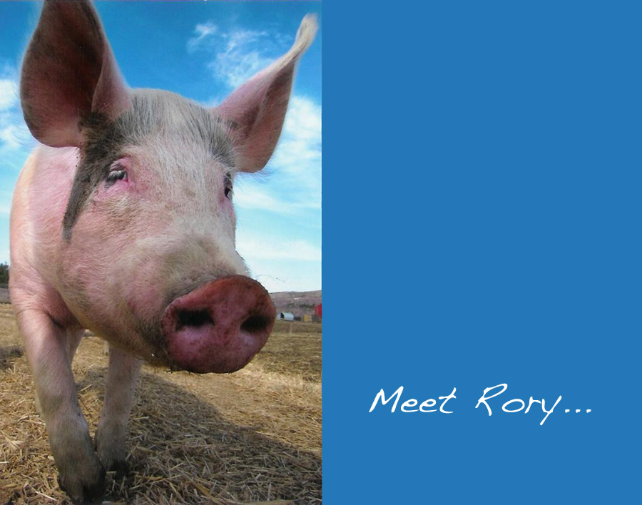 This is Rory. She lives at a Farm Sanctuary shelter in New York after having been rescued from a flood in 2008. She is described as “jubilant and friendly,” her favorite foods are “Pears and Rice Cakes,” and she was adopted by our family on November 26, 2010. This is her picture from the packet that arrived at our house today. Isn’t she just the loveliest little girl? I know I lobbied against a pig when we did this, but how can you not instantly fall in love with that face? I think she’s swell.