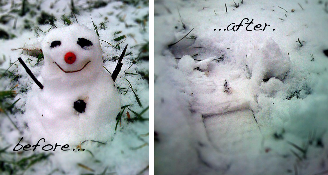 Some Christmas Eve snowfall called for a little snowman build. Literally — a little snowman. So little, in fact, that our UPS delivery lady didn’t see him on her way back to the truck. So harsh.