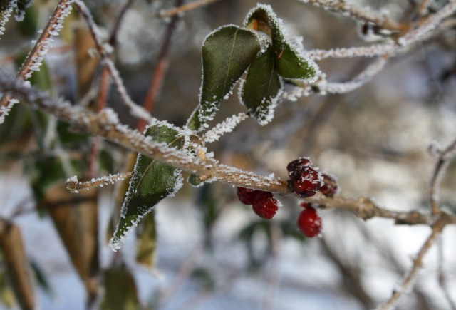 But nothing compares to the beauty of the frost that coated the earth this morning. Every twig, every berry, every needle… it was unreal. Up close, everything looked like it had been coated in margarita salt.