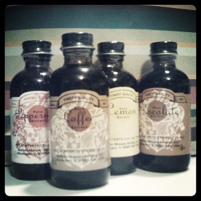My boss is going to be out of town on my big birthday, so we celebrated a little early with a potluck lunch. It was really lovely. We all brought in a dish (the boys did the heavy lifting — thank you so much, fellas) and it was way better than any lunch at a restaurant, hands down. It’s so weird that I would actually feel that way. I’ve never been much of a baker or a cook, nor have I appreciated really good food. In fact, a long time ago, I had an ex-boyfriend repeatedly point out the irony of my Betty Crocker series microwave. (Hence the prefix: “ex”) But in recent years, I’ve grown to love being in the kitchen. I still have a lot of improving to do, but I’m not afraid to try any more. That alone is progress that I’m very proud of. So imagine how excited I was to receive a variety of extracts from my friend Lorraine for my birthday! Oh my gosh! It’s true! I can cook to the point that someone gave me something kitchen-related as a gift?! And I actually love it?! I cannot wait to put these to use. So unusual! Coffee extract? Really? Awesome. (Thank you, Lolo!)