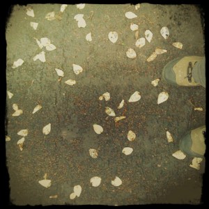 Dogwoods have lost their blooms, making for some lovely confetti along the path.