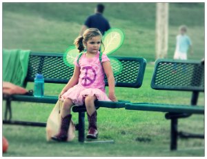 Although Drew couldn’t play in today’s match with his college team due to yesterday’s surgery, that didn’t stop us from going to watch his teammates in action. And I’m SO grateful we did because I found my new hero in the process. When I walked up to the courts, I saw this little girl on the nearby soccer field — trying to play. She was hysterical. Her big wings were flapping, her tutu was floating and her cowboy boots were thudding as she clunked past a bunch of boys to get to the ball. Not only was she not worried about anyone judging her, it never seemed to occur to her that it was a possibility.