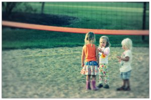 This little trio was a little more conformist in attitude, but they were pretty funny, too. They had apparently sniped their daddy coaches’ practice whistles and were noisily keeping themselves occupied. The little girl to the left is wearing Hello Kitty boots, by the way. So she’s my second-runner-up new hero.