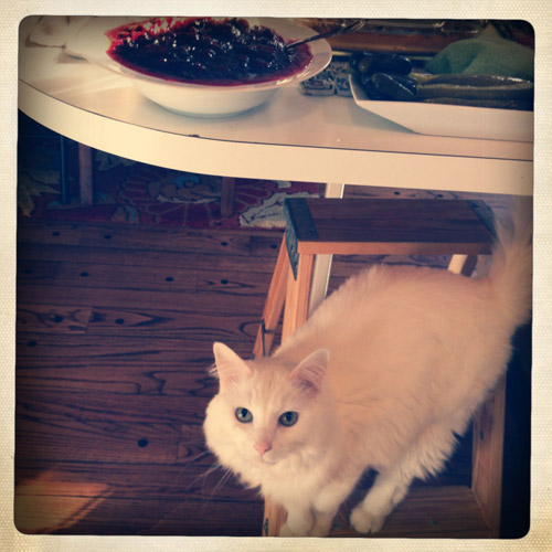 I don’t have a lawn that needs to be mowed (let’s talk leaf removal), but I do have a home — and a lot of cleaning went into today’s preparations. Mostly due to these furry creatures whom, though they are a mess, we love dearly. Tonight I’m thankful for…our warm home that welcomed many loved ones today — and every day provides shelter to my two awesome boys and our two very special kitties. Kitties who scoured my floor for turkey scraps all day.