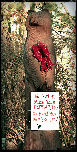 Poor baby has had a rough way to go. Awhile back, some knucklehead vandalized this beloved bear, setting him on fire at the base. Fortunately the fire was put out before the bear was destroyed, but he was badly charred and discolored. But he’s received some TLC and seems to be back in top form.