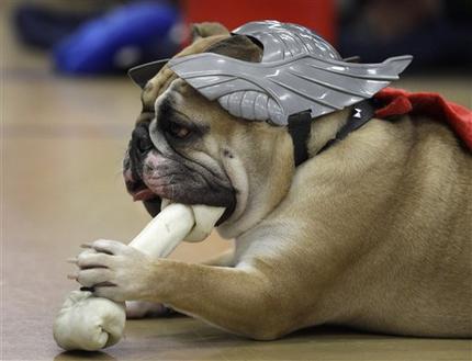 Ironically, his university of choice has a bulldog as its mascot, but I don’t think they do anything like this.