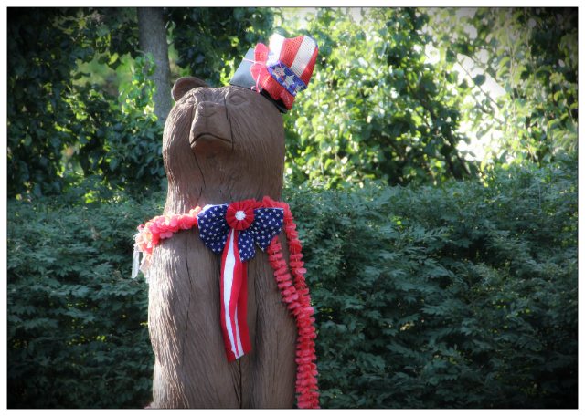 Apparently someone in the family has graduated because country bear was wearing a graduation cap on my way to work this morning. Then he was channeling Uncle Sam by the time I was on my way home.