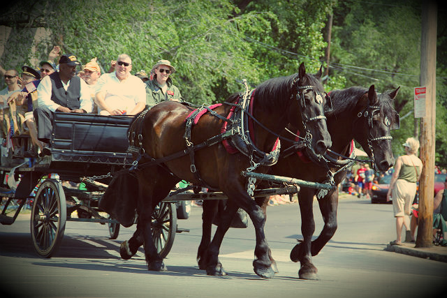 …but here’s the real reason that we parked a mile away and hoofed it to sit on a curb to watch a two-hour parade in 100+ degree heat in a town in which we don’t live: