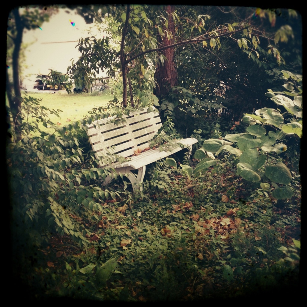 For months, my various running routes have all had one particular corner in common. And for all these months I have failed to notice this empty bench sitting away from the curb, slightly hidden by unruly hedges and overgrown weeds. I saw it tonight and it stopped me in my tracks. It was like a sad little poem. Lonely, forgotten, waiting. So I decided to pull out my phone to preserve it and give it some life.