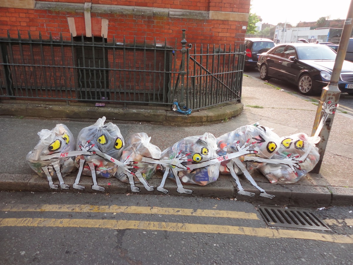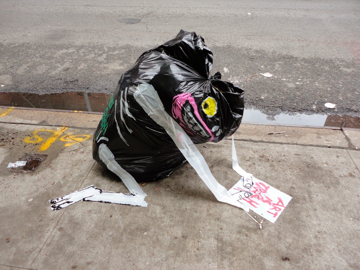 Saw an article this morning and I’m still cracking up. An artist named Francisco de Pájaro (all photos in this post are credited to him) searches for trash at night and turns it into art to make people laugh. He has a blog, too, called Art is Trash.