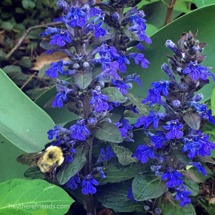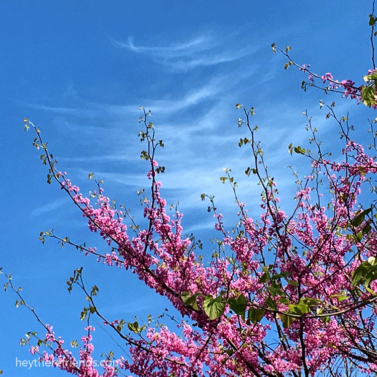 Can you spot the bees in the redbud blooms above and in the purple blooms below?