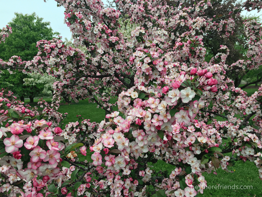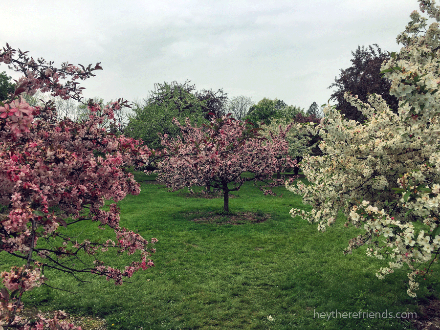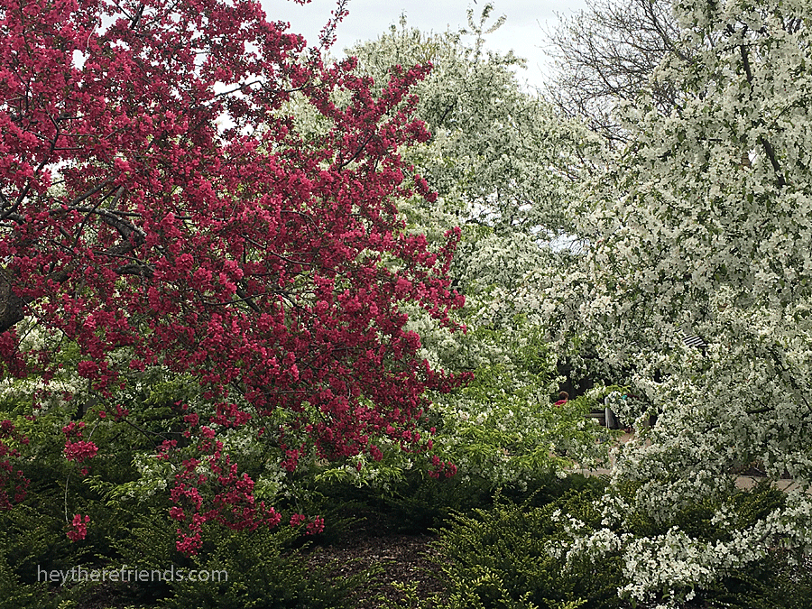 A work trip up north gave me a second chance at Spring…and I felt so, so lucky and hopeful. As if one spring isn’t cause enough for gratitude, I got to experience it twice this year. It was like getting a do-over. How often do we get that? The blooming season up north is several weeks behind ours here in St. Louis, so it was a show of redbuds, dogwoods, crabapples, cherry blossoms, tulips, daffodils, lilacs, and more. In addition to beautiful scenery along the drive, I made quick visits to three gorgeous places.