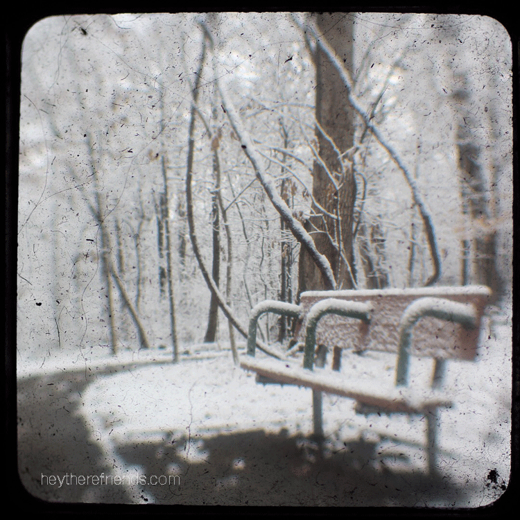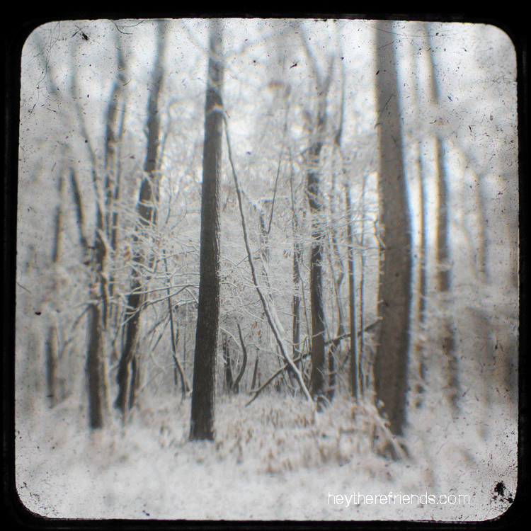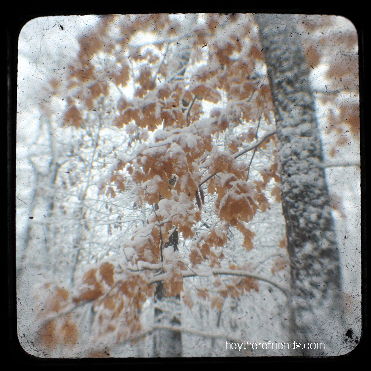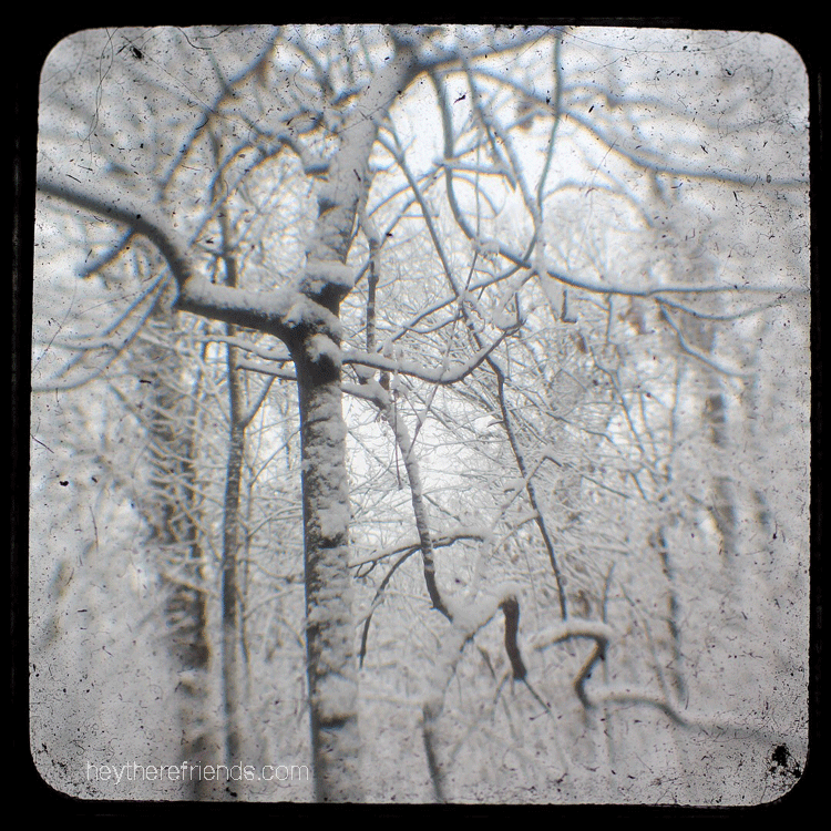 Our first snow of the year arrived just in time for Christmas. It was – and continues to be – absolutely beautiful. Magical. So I wanted to record it in an unusual way. I figured out how to take photos with my Canon through the lens of an old, inoperable Duaflex. I’m so happy with the story these tell.