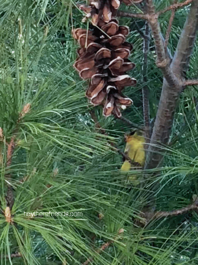 This morning as my older son and I strolled through the Botanical Garden, a neon yellow goldfinch buzzed right in front of us, fluttering to a stop on a nearby tree. I can’t explain it, but that little bird grabbed my attention unlike anything else along our path. He positively glowed. I stopped and stared at him — and he seemed to return my gaze. I pointed him out to my son, who was more than slightly less impressed than I was. We headed on our way with the goldfinch watching us.