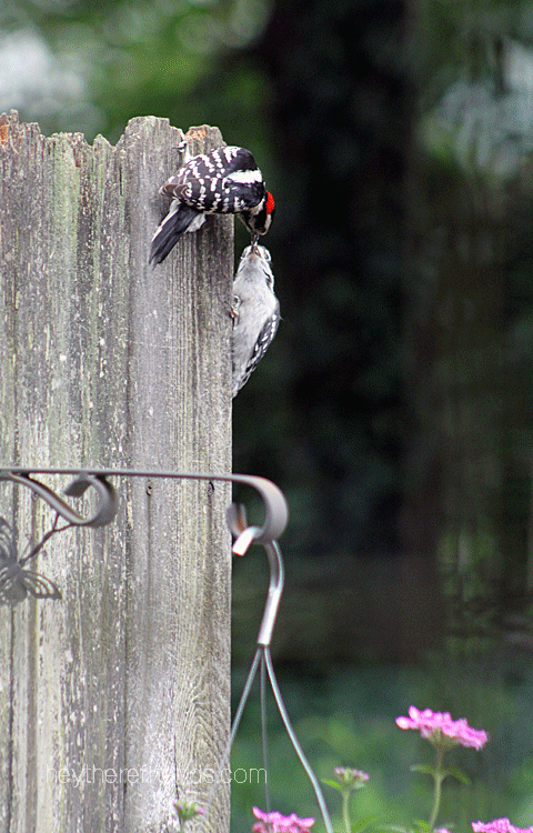 For the third day in a row, my lovebirds are back, the male carefully feeding the female.