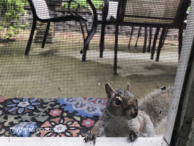 But this is how my day started. Last night, I’d swept all of the bird seed off the patio. I replaced it this morning, but not before catching some attitude from this guy who was anxious for chow time.