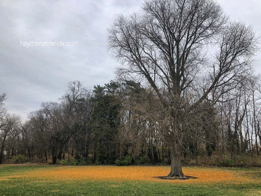 From impressions left on the pavement to the blanket of color surrounding a freshly emptied tree, even fall’s aftermath is beautiful. I’m so sorry to see the glory of the season fade. But I guess letting go is the whole point of fall.