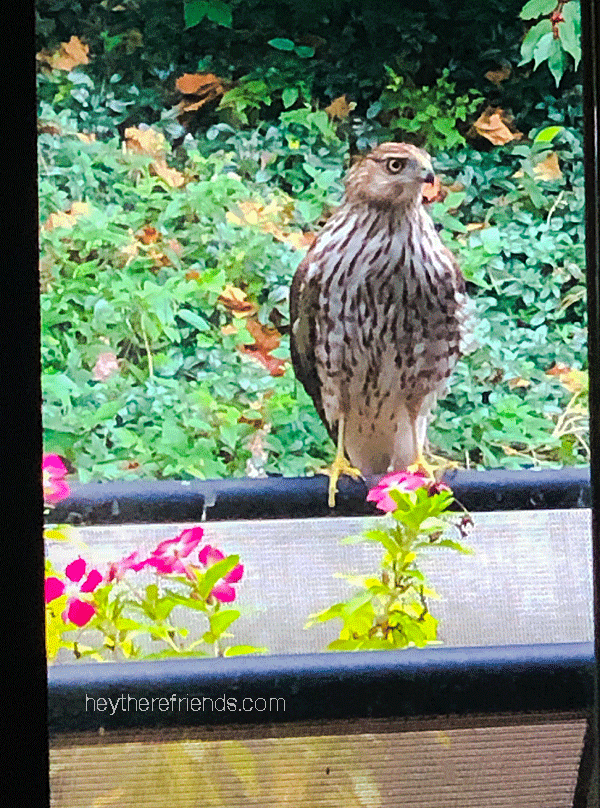 In today’s other news, check out this visitor to my back porch today. Apologies for the crappy photo, but I had about 20 seconds to grab the nearest camera, which happened to be my phone.