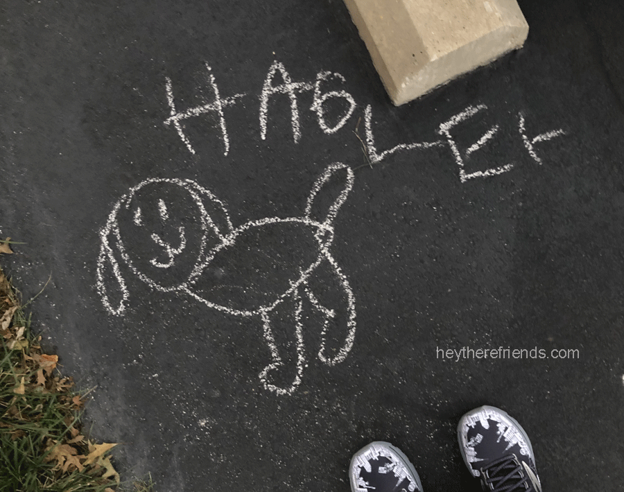 Below: A sidewalk chalk portrait of my dog, signed by the artist.