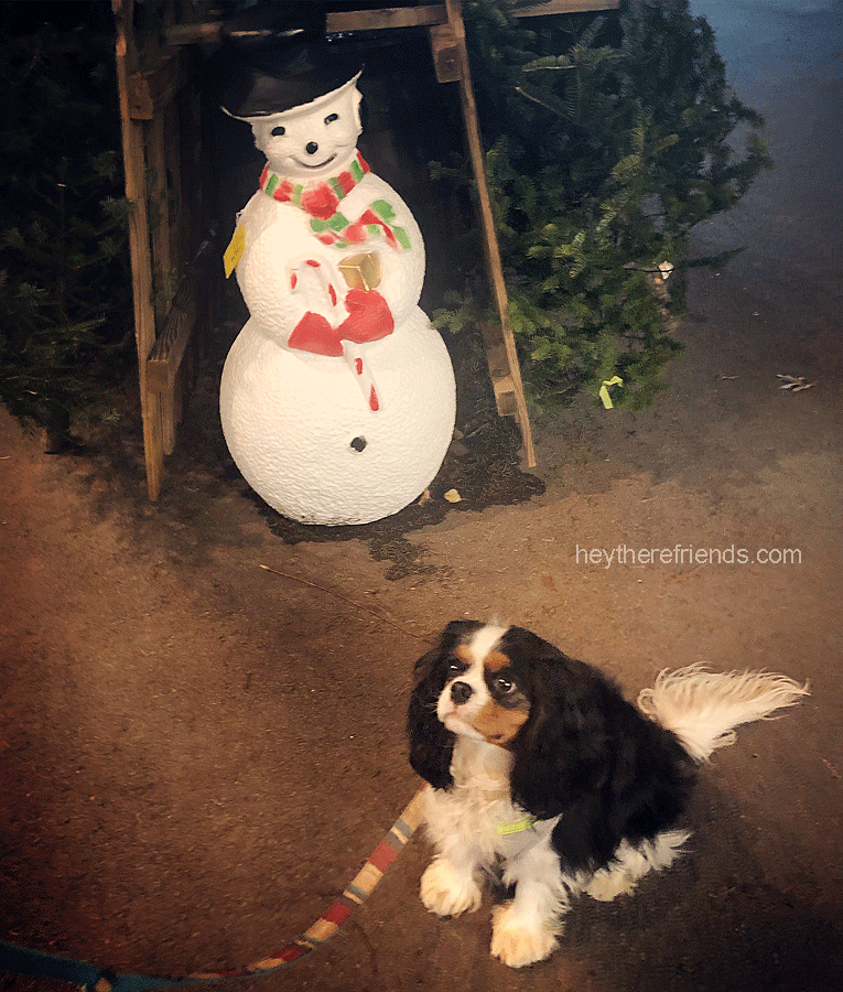 A little downtown stroll with my fur boy this evening, right by the Farmers Market and the Christmas Market. I so enjoyed watching families search for their perfect tree and strap their winning selection atop their vehicles. There was excitement, anticipation and happiness in the air, as well as the gorgeous scent of fresh evergreens.