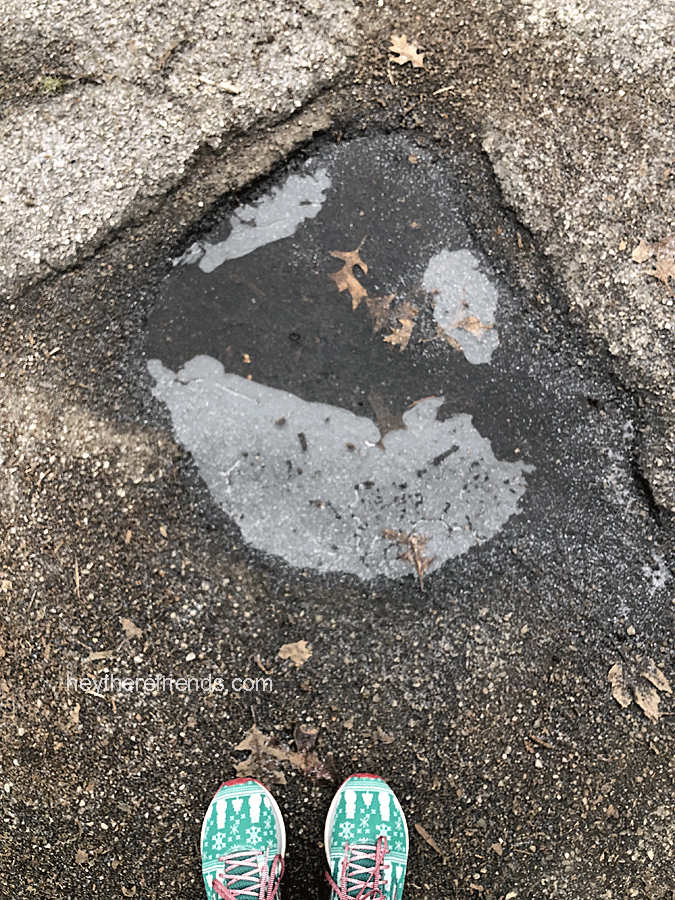 Today I went for a frigid run – shy of 20 degrees – and it was a little on the painful side. But I spotted a few things along the way that made me laugh and got me through, including a few faces in the ice.