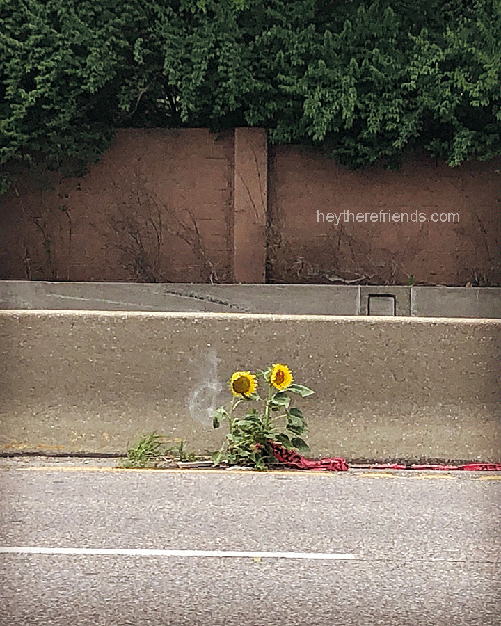 Beauty and life trying to find its unlikely way in the median of an interstate.