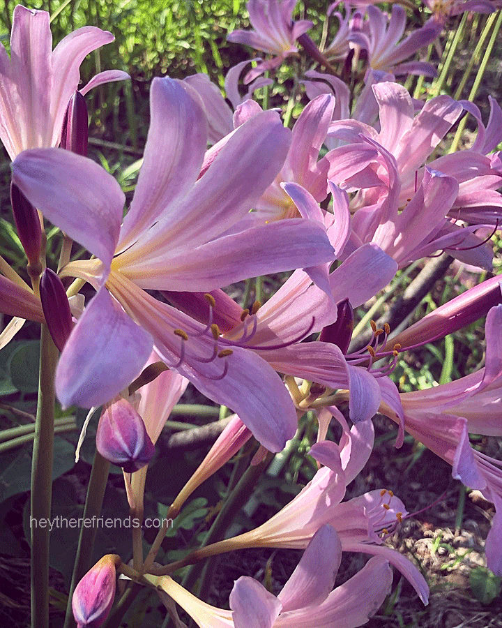 Timing is one of my favorite aspects of resurrection/surprise lily season. These guys just appear out of nowhere, no rhyme or reason. One day, nothing. The next day, hi there!