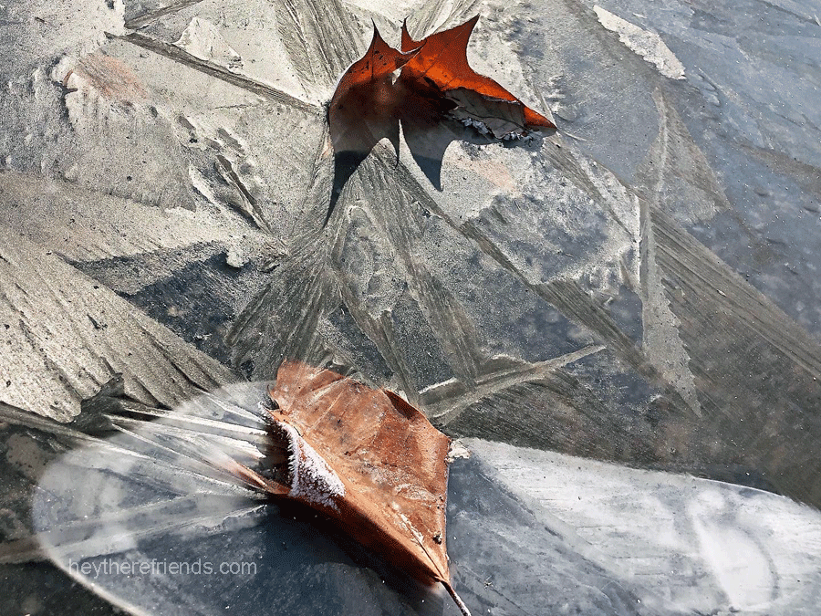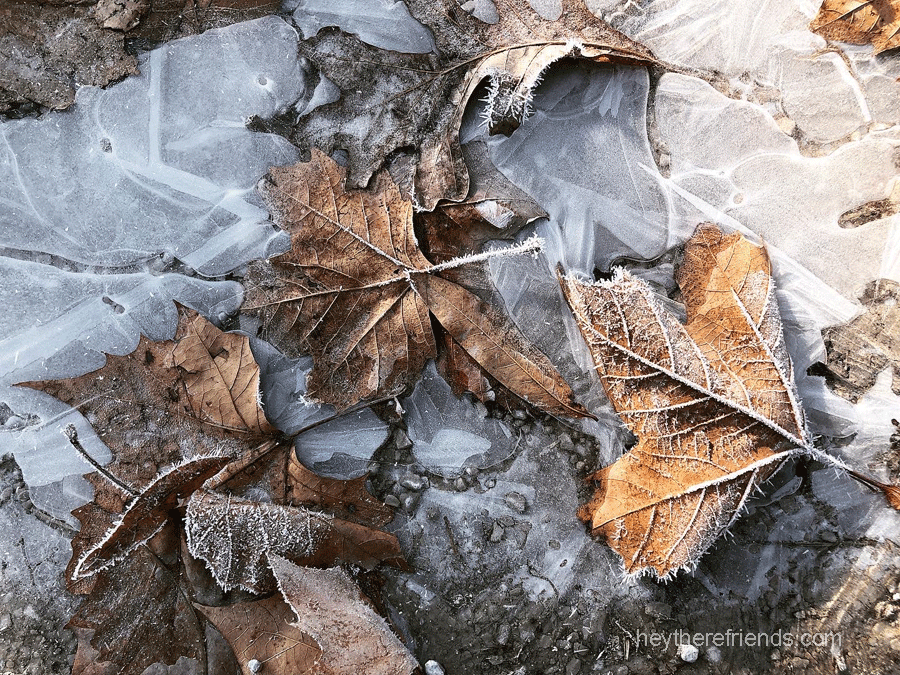 I couldn’t decide which was more fascinating – the fuzzy frost or the patterns in the ice.