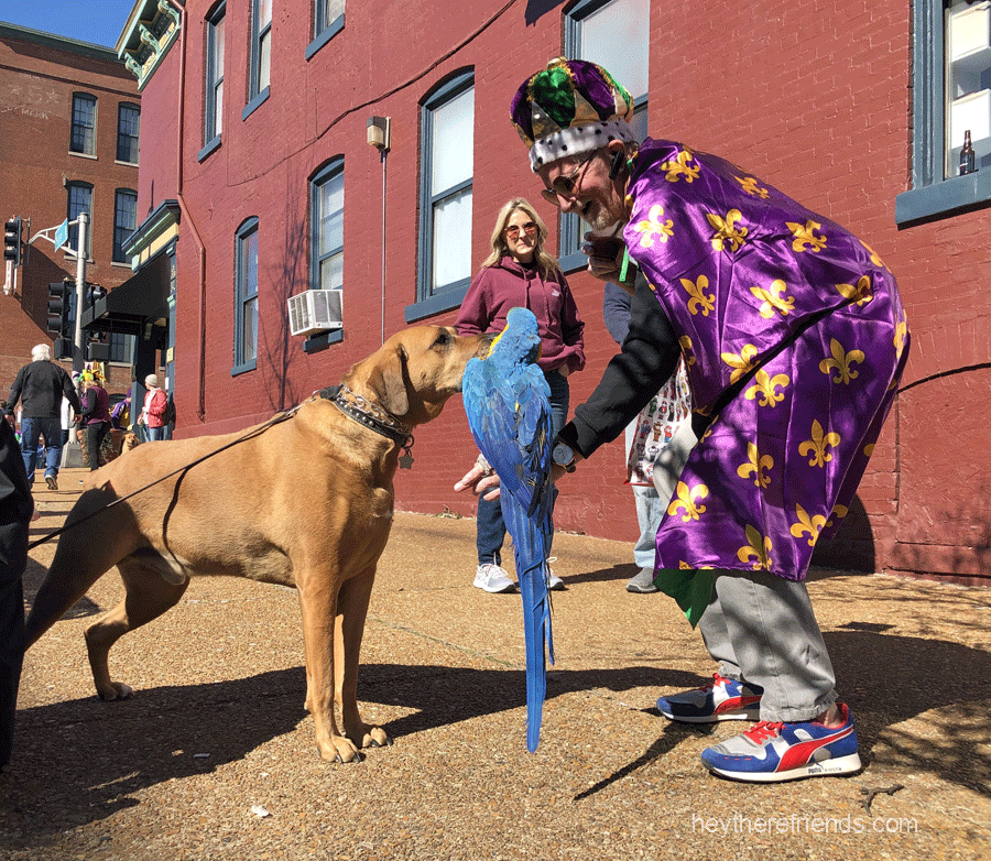 St. Louis does a lot of things well, but we do Mardi Gras REALLY well. The Purina Pet Parade always gets the lengthy celebration started on the best note – and today was a gorgeous day for it. So my younger son, Finn and I piled into the car and headed to Soulard.