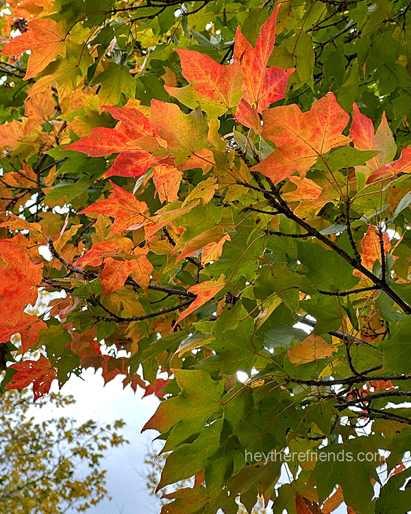 The loveliest transition is happening right now. It feels like it’s a little slow to get going, but fall colors are definitely emerging more and more every day. I call this the “stoplight phase.” Many of the trees are showing red, yellow and green.