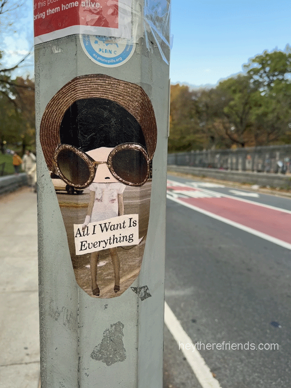 Although I think I stumbled upon a new scavenger hunt on this trip. Not as cute as Phoebe, but almost as sassy and worthy of a smile. I’ll be searching for both during my next New York adventure.